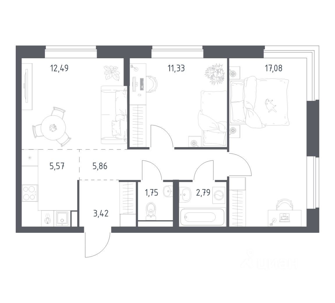 Строим кварталы для жизни с заботой о будущем. Предлагается 2-комнатная квартира комфорт-класса площадью 60,29 кв.м в корпусе 14.2 на 9-м этаже, в жилом комплексе "Новое Видное".