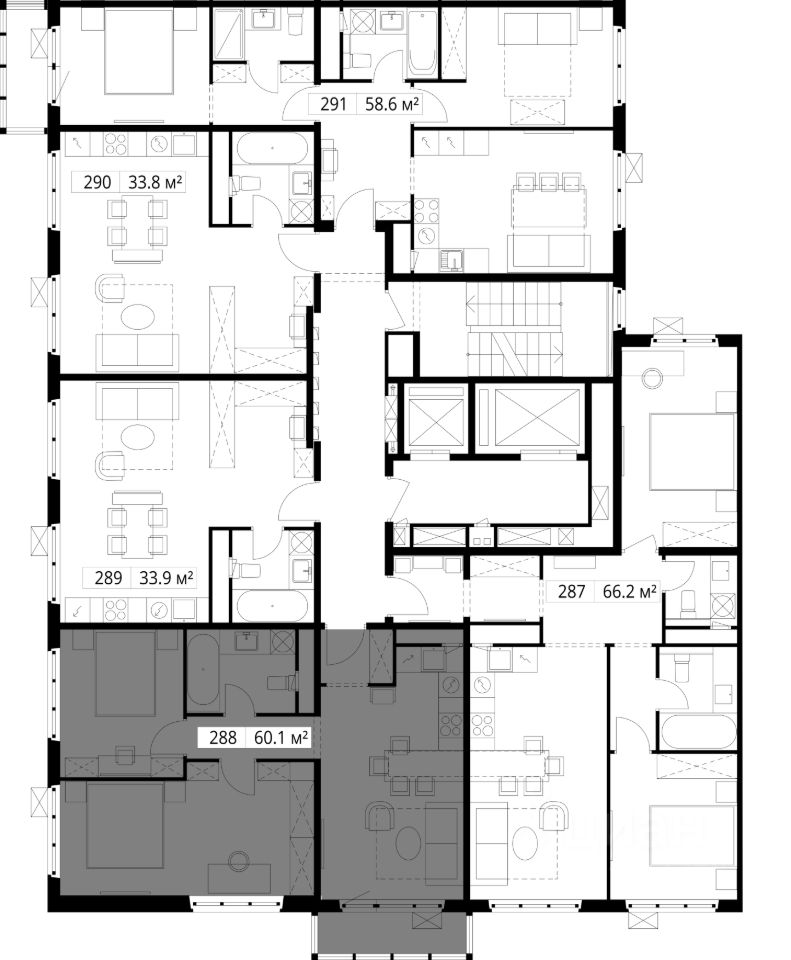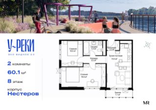 Продаётся 2-комнатная квартира общей площадью 60.10 м² с предчистовой отделкой в ЖК "У реки. Эко Видное 2.0" на 8-м этаже корпуса Нестеров.