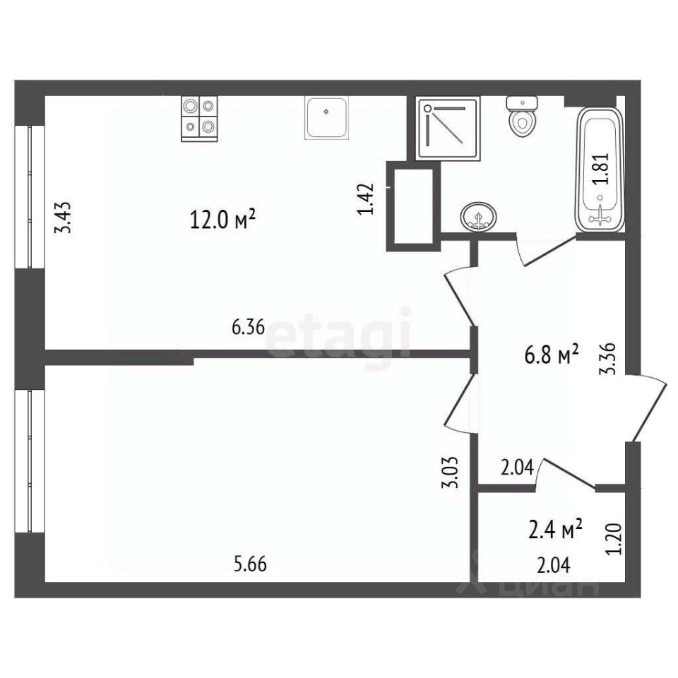 Функциональная планировка : изолированная спальня , кухня ,коридор/гостиная , с/у совмещаенный.