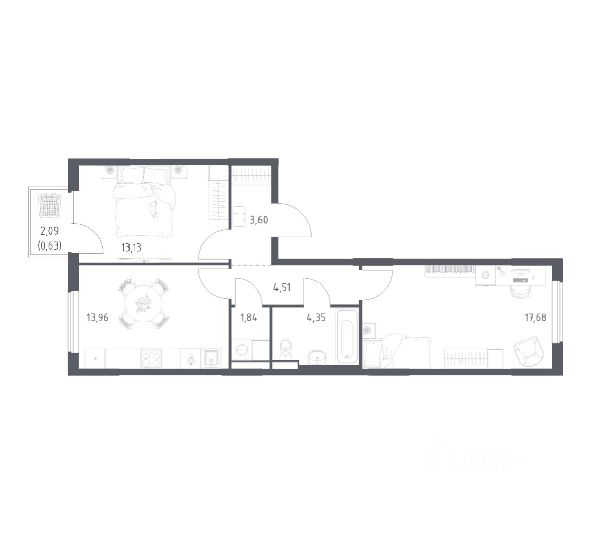 Строим кварталы для жизни с заботой о будущем. Предлагается 2-комнатная квартира комфорт-класса площадью 59,7 кв.м в корпусе 8.2 на 5-м этаже, в жилом комплексе "Горки Парк".