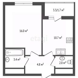 Квартира общей площадью 38.4 кв. м, с лоджией - 3,3 кв.м потолки высотой 2,8 м. Вайт Бокс