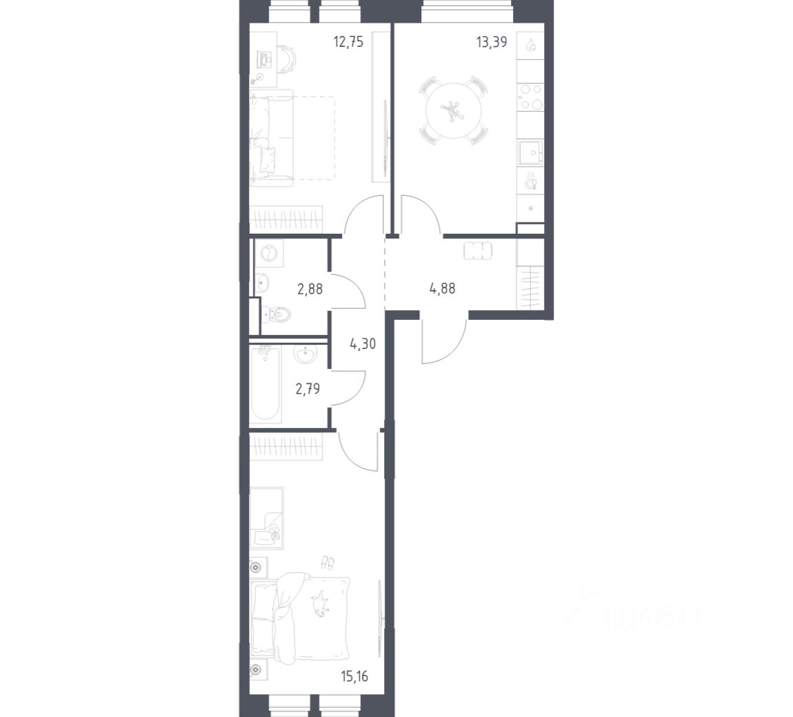 Общая площадь56,15 м²