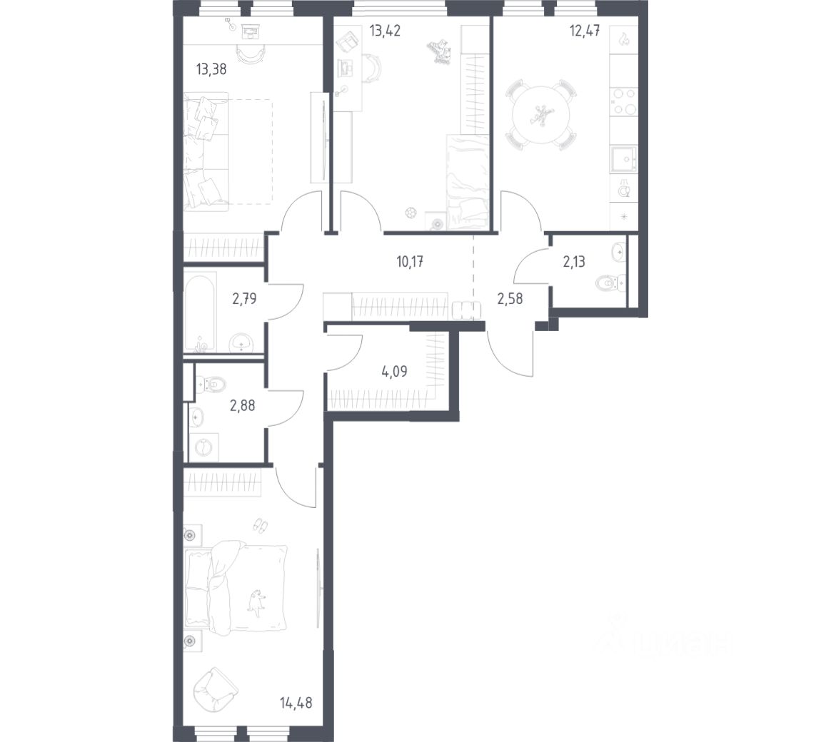 Строим кварталы для жизни с заботой о будущем. Предлагается 3-комнатная квартира комфорт-класса площадью 78,39 кв.м в корпусе 21 на 11-м этаже, в жилом комплексе "Пригород Лесное".