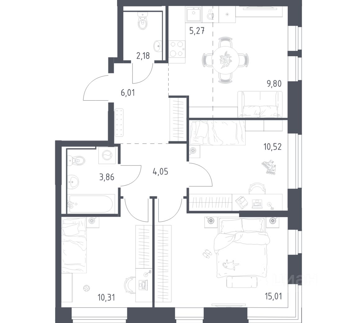 Строим кварталы для жизни с заботой о будущем. Предлагается 3-комнатная квартира комфорт-класса площадью 67,01 кв.м в корпусе 21 на 2-м этаже, в жилом комплексе "Пригород Лесное".