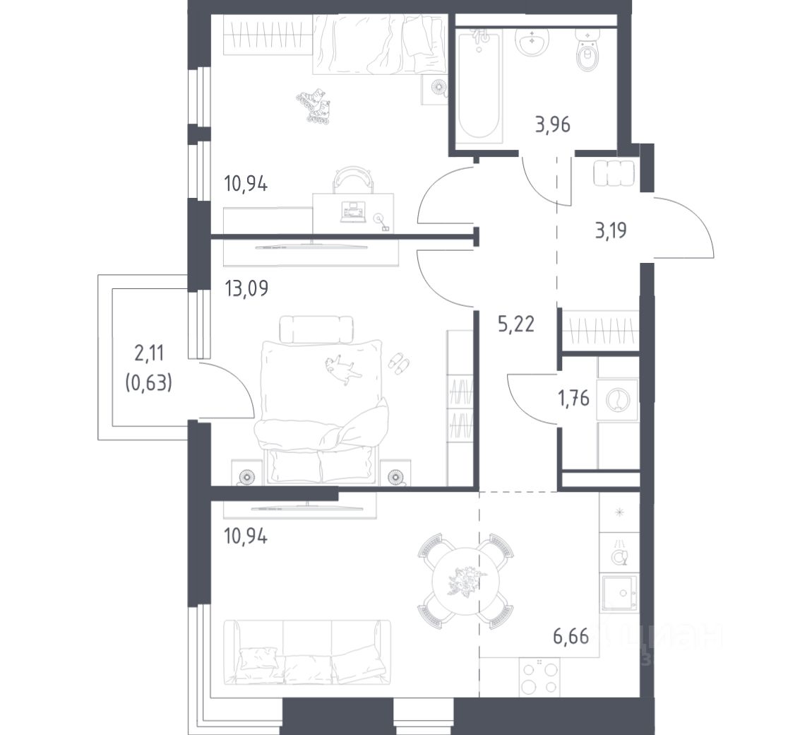 Строим кварталы для жизни с заботой о будущем. Предлагается 2-комнатная квартира комфорт-класса площадью 56,39 кв.м в корпусе 21 на 6-м этаже, в жилом комплексе "Пригород Лесное".