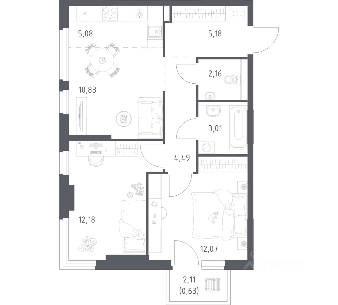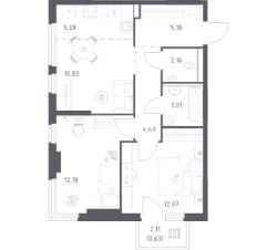 Строим кварталы для жизни с заботой о будущем. Предлагается 2-комнатная квартира комфорт-класса площадью 55,63 кв.м в корпусе 20 на 11-м этаже, в жилом комплексе "Пригород Лесное".