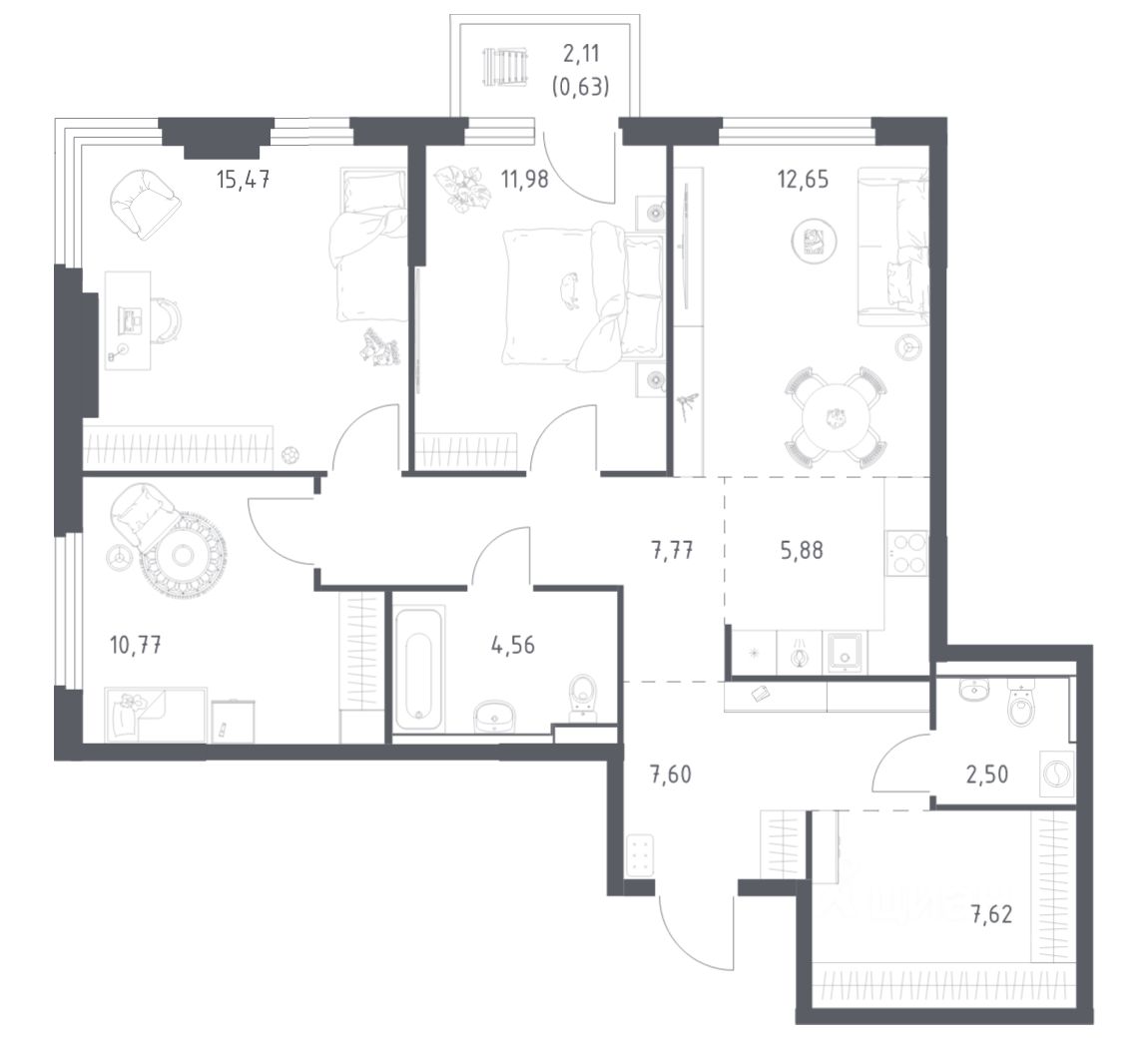 Строим кварталы для жизни с заботой о будущем. Предлагается 3-комнатная квартира комфорт-класса площадью 87,43 кв.м в корпусе 20 на 13-м этаже, в жилом комплексе "Пригород Лесное".