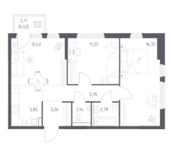 Строим кварталы для жизни с заботой о будущем. Предлагается 2-комнатная квартира комфорт-класса площадью 60,5 кв.м в корпусе 20 на 12-м этаже, в жилом комплексе "Пригород Лесное".