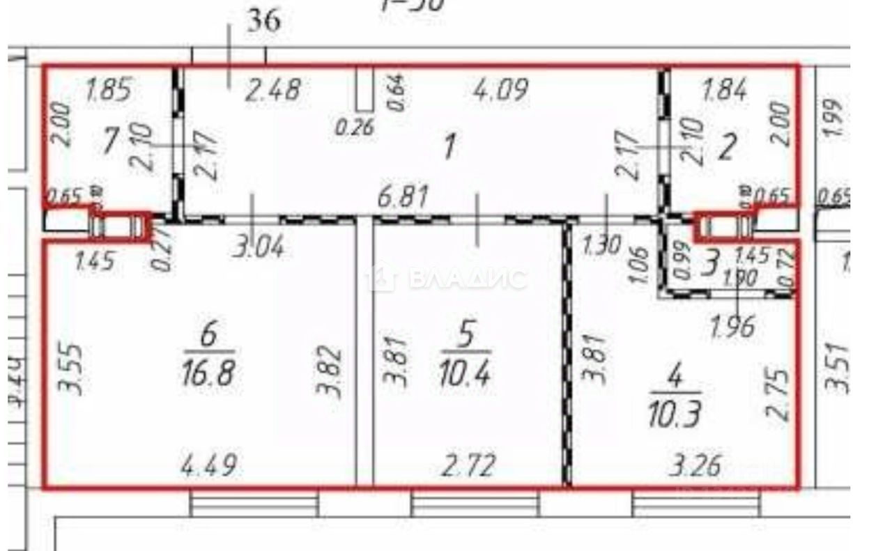 - Две изолированные комнаты (10,4 кв. м и 10,3 кв. м).