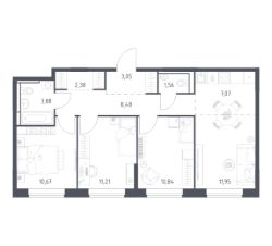 Строим кварталы для жизни с заботой о будущем. Предлагается 3-комнатная квартира комфорт-класса площадью 71,09 кв.м в корпусе 10.1 на 3-м этаже, в жилом комплексе "Богдановский Лес".