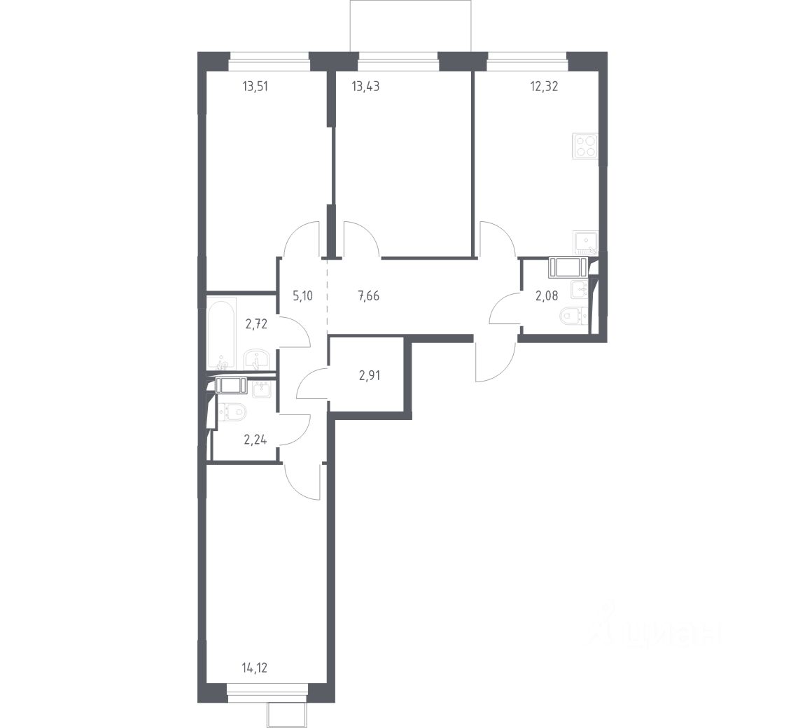 Строим кварталы для жизни с заботой о будущем. Предлагается 3-комнатная квартира комфорт-класса площадью 75,5 кв.м в корпусе 10.2 на 7-м этаже, в жилом комплексе "Пригород Лесное".