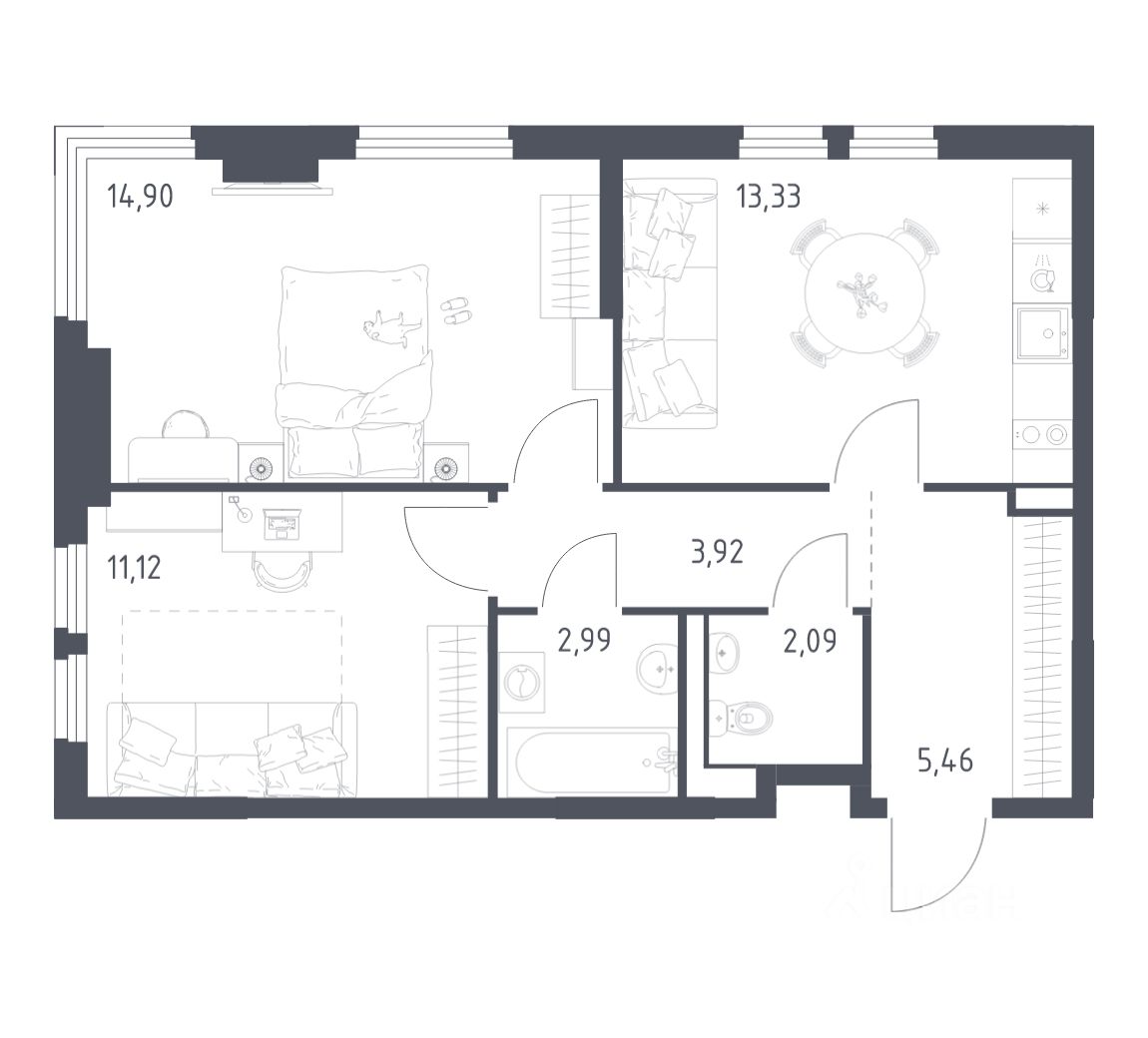 А если не хочется тратить время на ремонт, можно выбрать опцию — с отделкой. Перед тем как отдать ключи, застройщик установит натяжные потолки, поклеит обои под покраску, положит ламинат светлых тонов, а в санузлах — керамическую плитку и керамогранит.