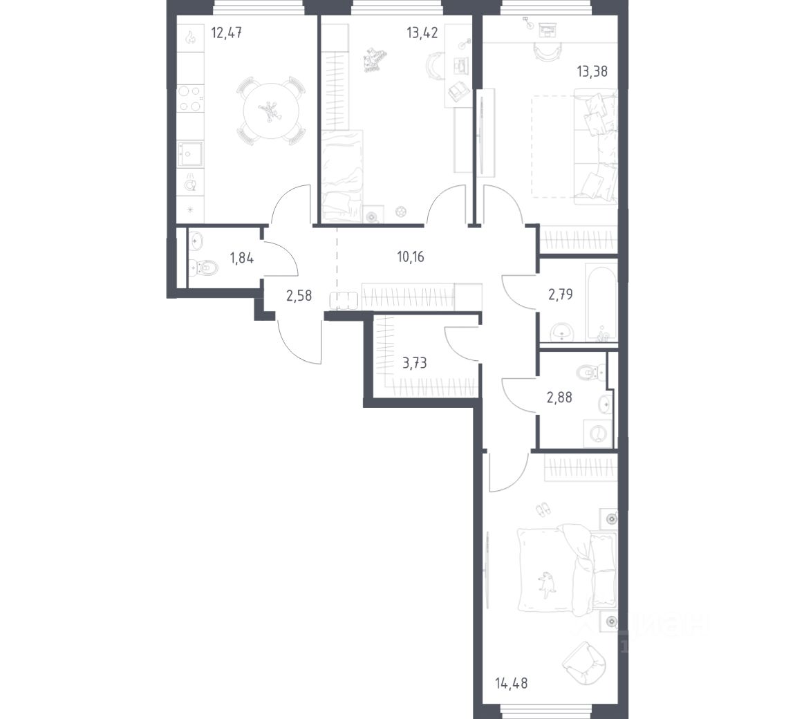 Строим кварталы для жизни с заботой о будущем. Предлагается 3-комнатная квартира комфорт-класса площадью 77,73 кв.м в корпусе 21 на 15-м этаже, в жилом комплексе "Пригород Лесное".