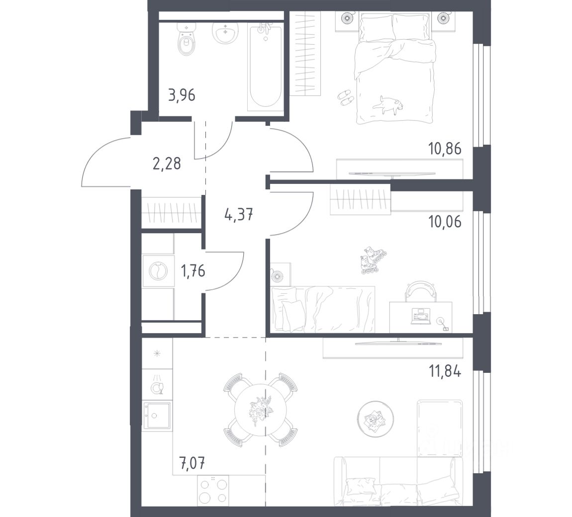 А если не хочется тратить время на ремонт, можно выбрать опцию — с отделкой. Перед тем как отдать ключи, застройщик установит натяжные потолки, поклеит обои под покраску, положит ламинат светлых тонов, а в санузлах — керамическую плитку и керамогранит.
