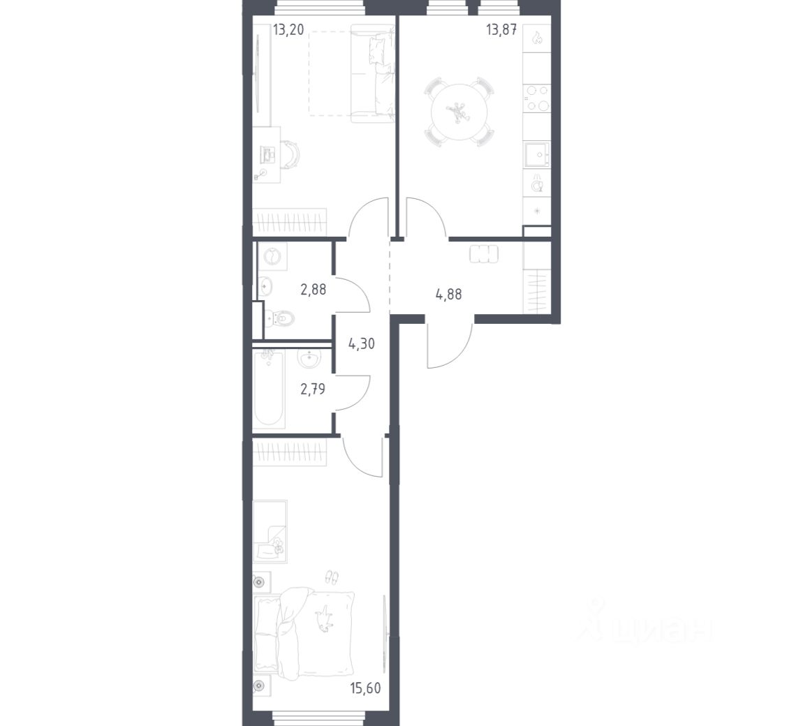 Строим кварталы для жизни с заботой о будущем. Предлагается 2-комнатная квартира комфорт-класса площадью 57,52 кв.м в корпусе 21 на 9-м этаже, в жилом комплексе "Пригород Лесное".