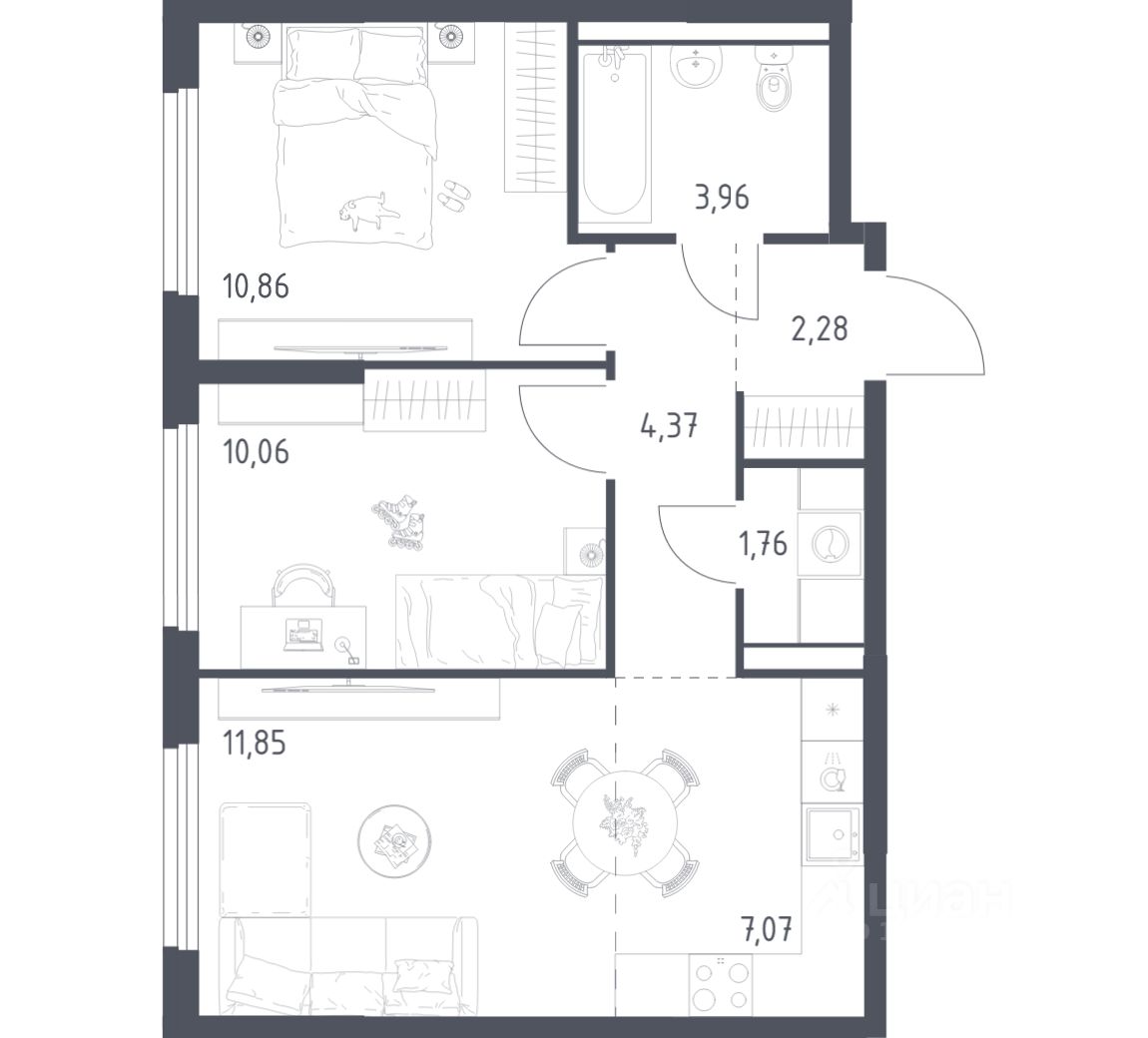 А если не хочется тратить время на ремонт, можно выбрать опцию — с отделкой. Перед тем как отдать ключи, застройщик установит натяжные потолки, поклеит обои под покраску, положит ламинат светлых тонов, а в санузлах — керамическую плитку и керамогранит.