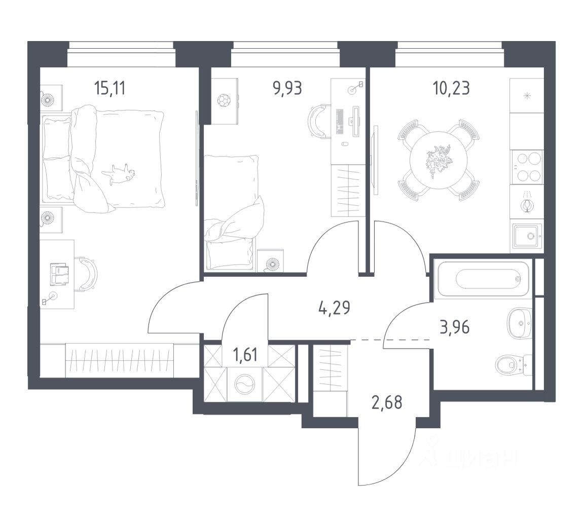 А если не хочется тратить время на ремонт, можно выбрать опцию — с отделкой. Перед тем как отдать ключи, застройщик установит натяжные потолки, поклеит обои под покраску, положит ламинат светлых тонов, а в санузлах — керамическую плитку и керамогранит.