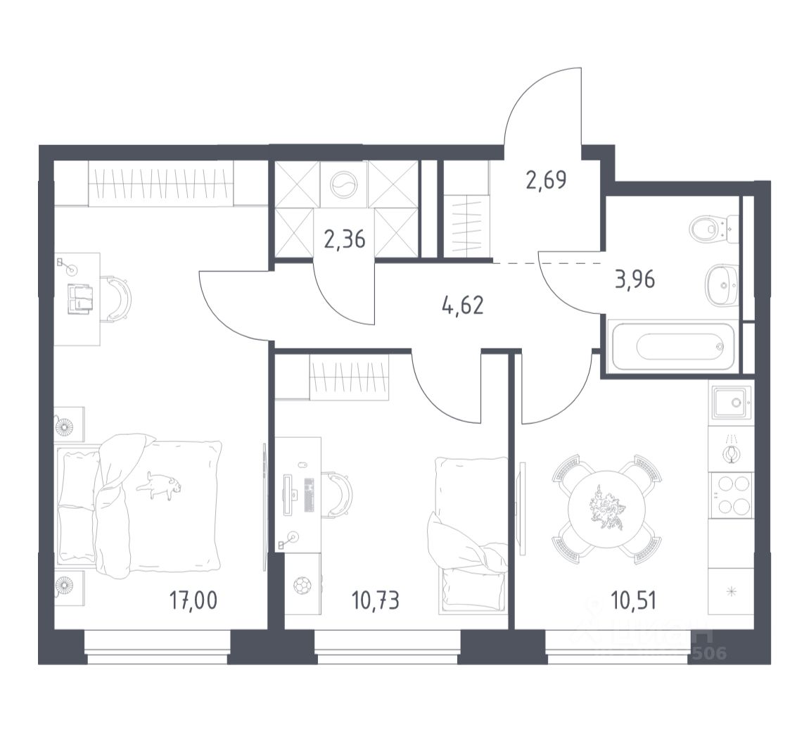 Строим кварталы для жизни с заботой о будущем. Предлагается 2-комнатная квартира комфорт-класса площадью 51,87 кв.м в корпусе 10.1 на 7-м этаже, в жилом комплексе "Богдановский Лес".