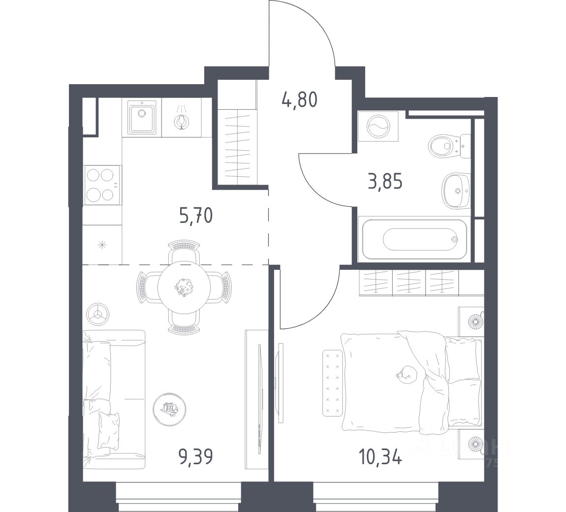 Строим кварталы для жизни с заботой о будущем. Предлагается 1-комнатная квартира комфорт-класса площадью 34,08 кв.м в корпусе 7.3 на 5-м этаже, в жилом комплексе "Богдановский Лес".