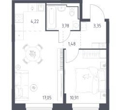 Строим кварталы для жизни с заботой о будущем. Предлагается 1-комнатная квартира комфорт-класса площадью 40,79 кв.м в корпусе 10.2 на 7-м этаже, в жилом комплексе "Богдановский Лес".