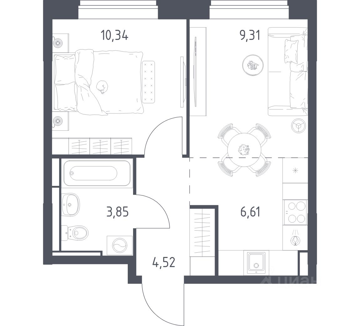 Строим кварталы для жизни с заботой о будущем. Предлагается 1-комнатная квартира комфорт-класса площадью 34,63 кв.м в корпусе 10.2 на 7-м этаже, в жилом комплексе "Богдановский Лес".