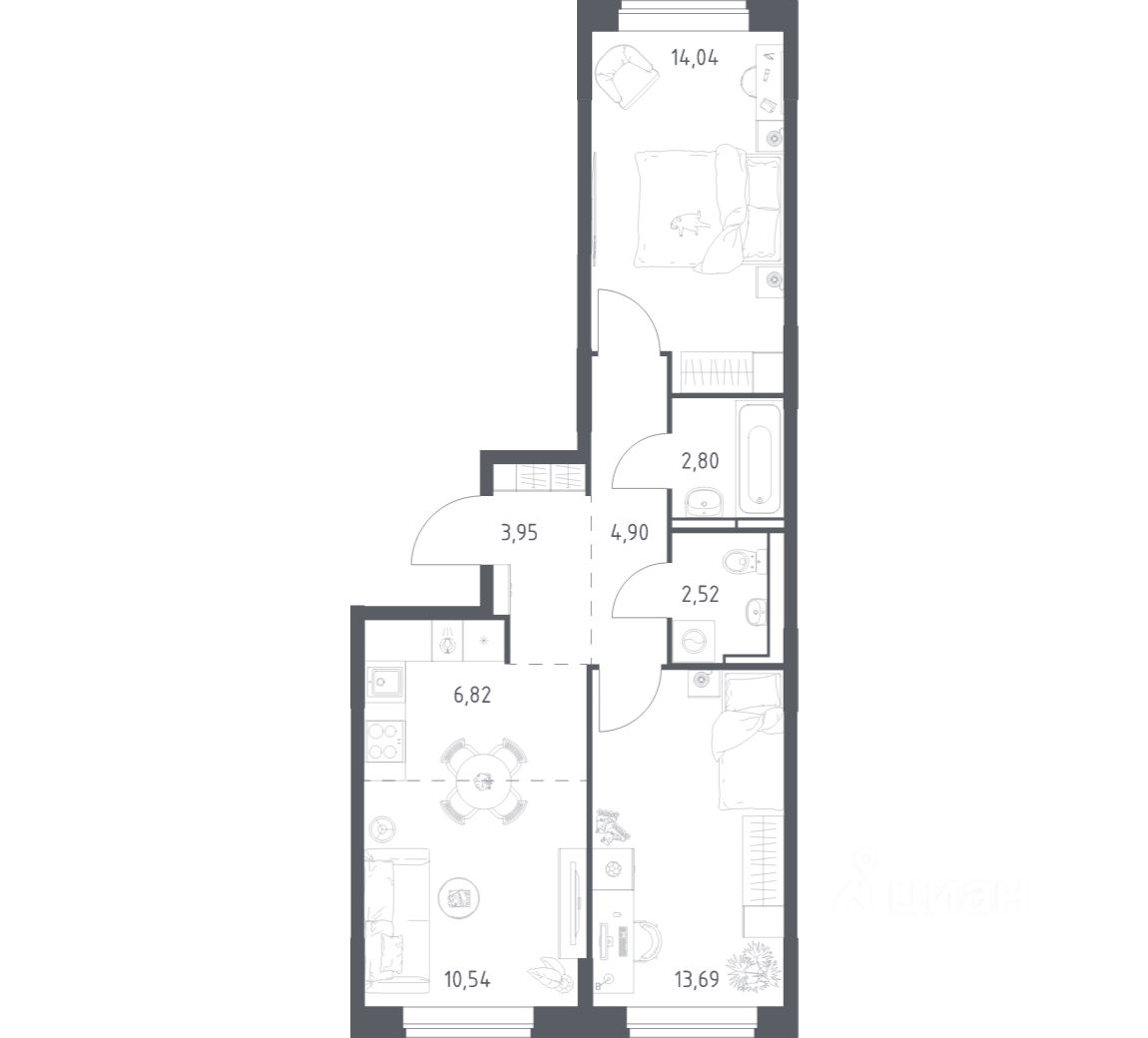 Строим кварталы для жизни с заботой о будущем. Предлагается 2-комнатная квартира комфорт-класса площадью 59,26 кв.м в корпусе 7.1 на 5-м этаже, в жилом комплексе "Богдановский Лес".