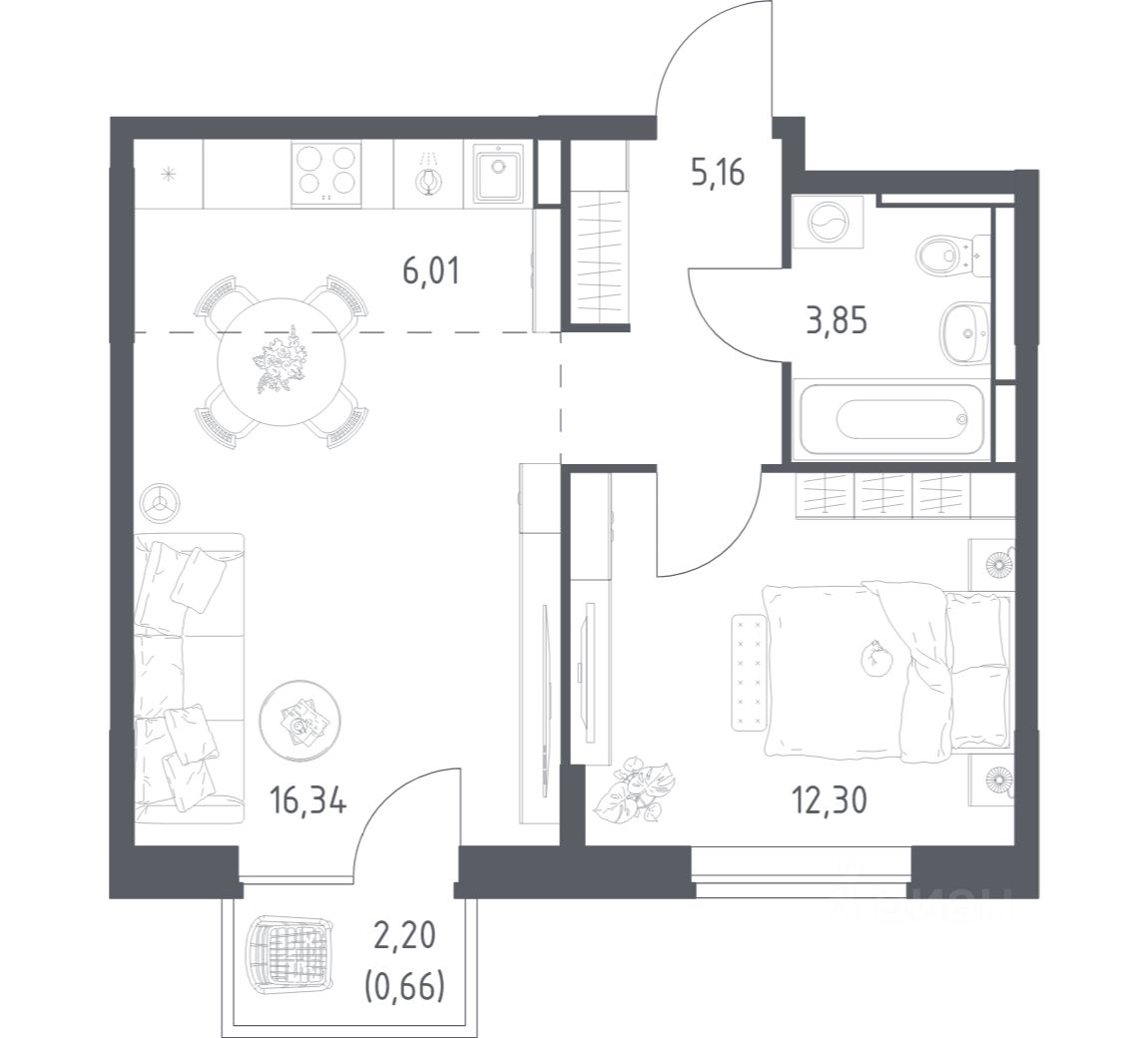 Строим кварталы для жизни с заботой о будущем. Предлагается 1-комнатная квартира комфорт-класса площадью 44,32 кв.м в корпусе 7.1 на 10-м этаже, в жилом комплексе "Богдановский Лес".
