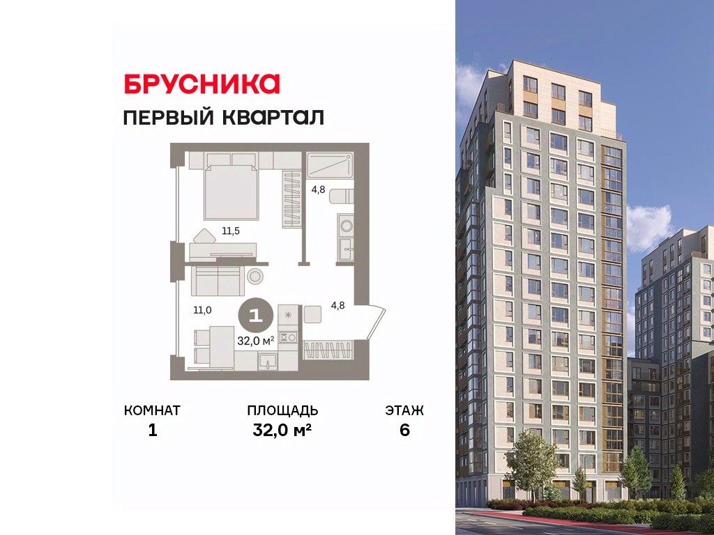Квартира с кухней-гостиной и одной спальней в "Первом квартале". Особенности планировки: вид во двор, предчистовая отделка.