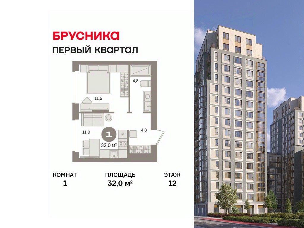 Квартира с кухней-гостиной и одной спальней в "Первом квартале". Особенности планировки: вид во двор, предчистовая отделка.