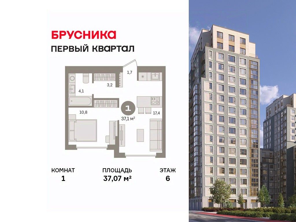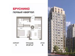 Квартира с кухней-гостиной и одной спальней в "Первом квартале". Особенности планировки: предчистовая отделка.