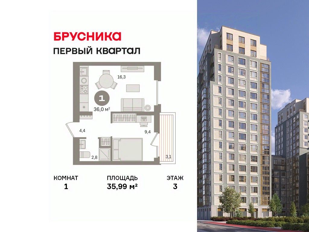 Продаётся с кладовой. Квартира с кухней-гостиной и одной спальней в "Первом квартале". Особенности планировки: балкон, вид во двор, предчистовая отделка. квартиры в нашей базе: МТК01-Ж2.3.2.