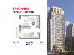 Продаётся с кладовой. Квартира с кухней-гостиной и одной спальней в "Первом квартале". Особенности планировки: балкон, вид во двор, предчистовая отделка. квартиры в нашей базе: МТК01-Ж4.2.6.