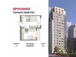 Квартира с кухней-гостиной и одной спальней в "Первом квартале". Особенности планировки: вид во двор, предчистовая отделка, терраса.