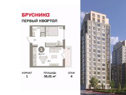 Квартира с кухней-гостиной и одной спальней в "Первом квартале". Особенности планировки: балкон, вид во двор, предчистовая отделка. квартиры в нашей базе: МТК05-Ж5.4.1.