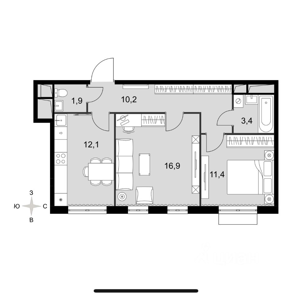 Продается уютная 2-комнатная квартира в новом современном доме. Общая площадь квартиры — 56 кв. м, жилая — 28.3 кв. м, просторная кухня занимает 12.1 кв. м. Квартира расположена на 6 этаже 9-этажного дома, построенного в 2024 году.