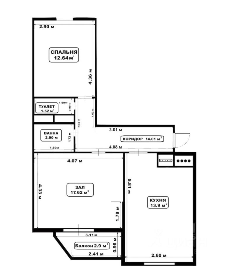 В ЖК Бутово Парк продаётся двухкомнатная квартира-распашонка 58,8 м² (по ЕГРН) с кухней 14 м², изолированными комнатами по 18 м² и 13 м².