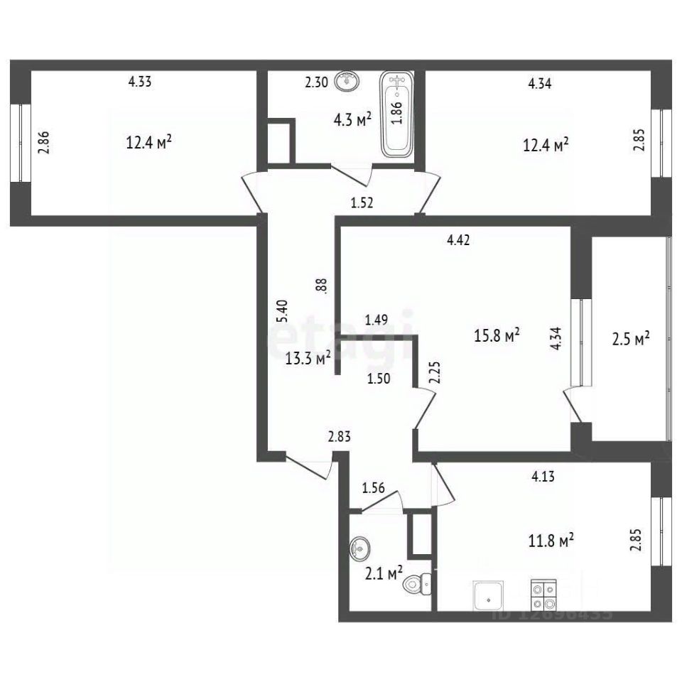 Просторная 3-комнатная квартира с техникой Bosch и двумя санузлами.