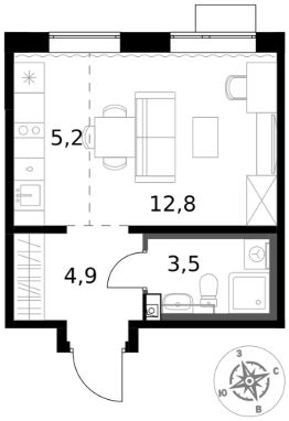 Продаётся квартира-студия номер 410 общей площадью 26.4 кв.м. на 21-м этаже 24 этажного здания. Отделка Whitebox.