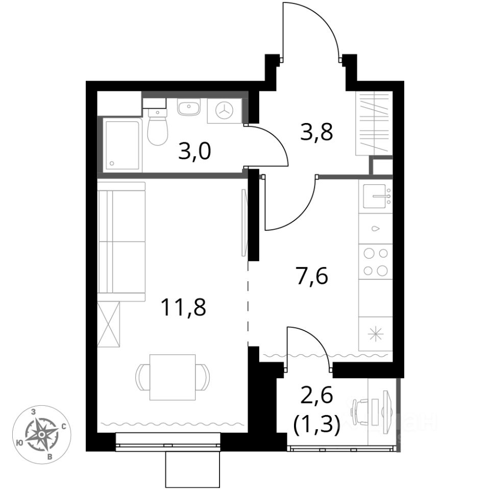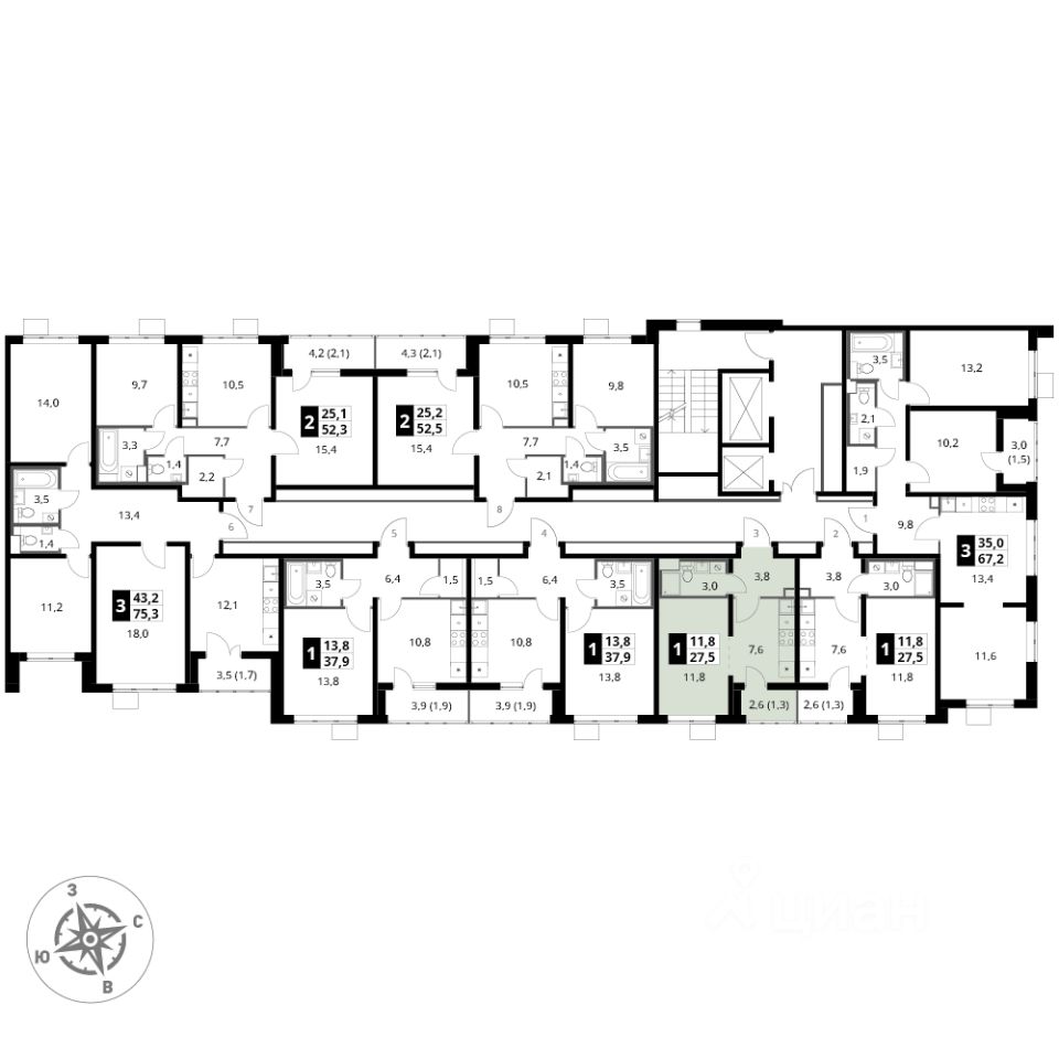Продаётся квартира-студия номер 267 общей площадью 27.5 кв.м. на 11-м этаже 25 этажного здания. Отделка Whitebox.