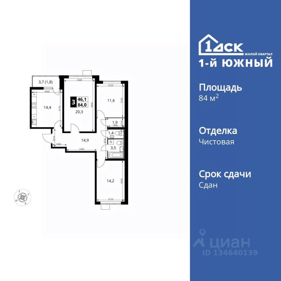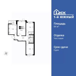 Продаётся 3-к квартира номер 485 общей площадью 84.1 кв.м. на 23-м этаже 24 этажного здания. Чистовая отделка. Цена с учётом скидки.