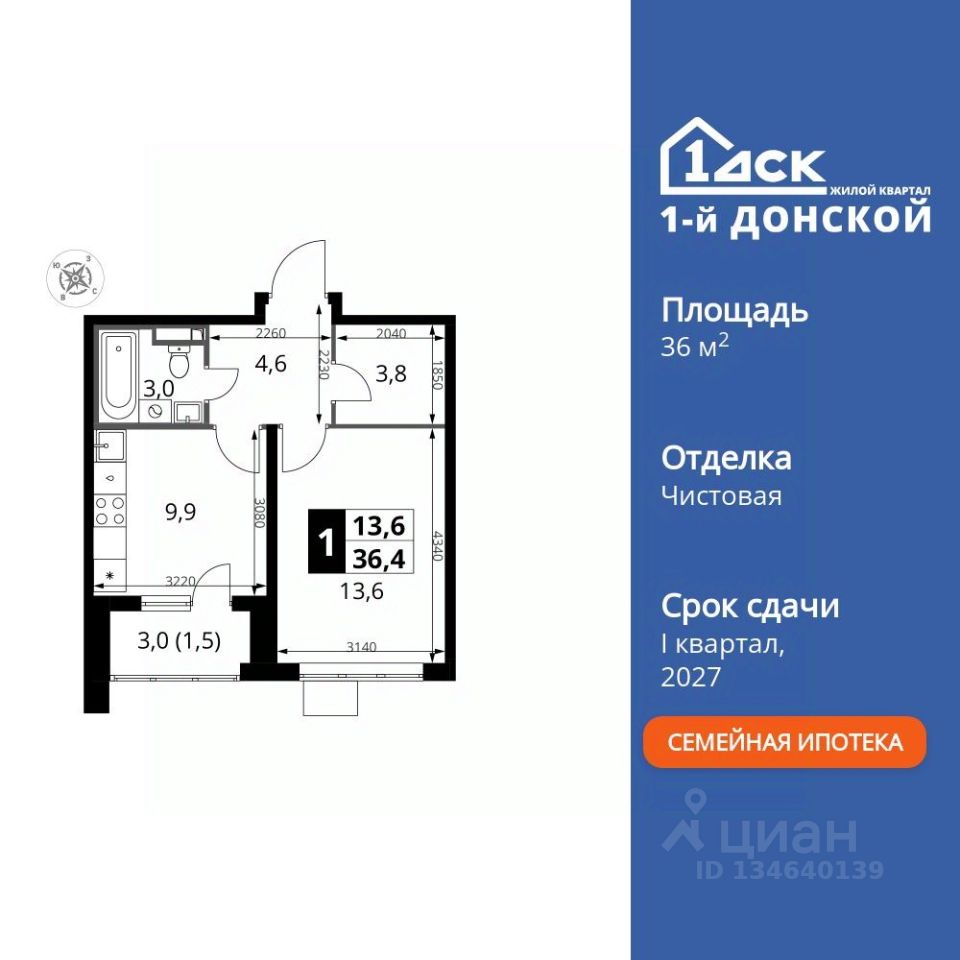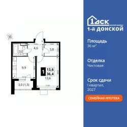 Продаётся 1-к квартира номер 140 общей площадью 36.4 кв.м. на 15-м этаже 24 этажного здания. Чистовая отделка.