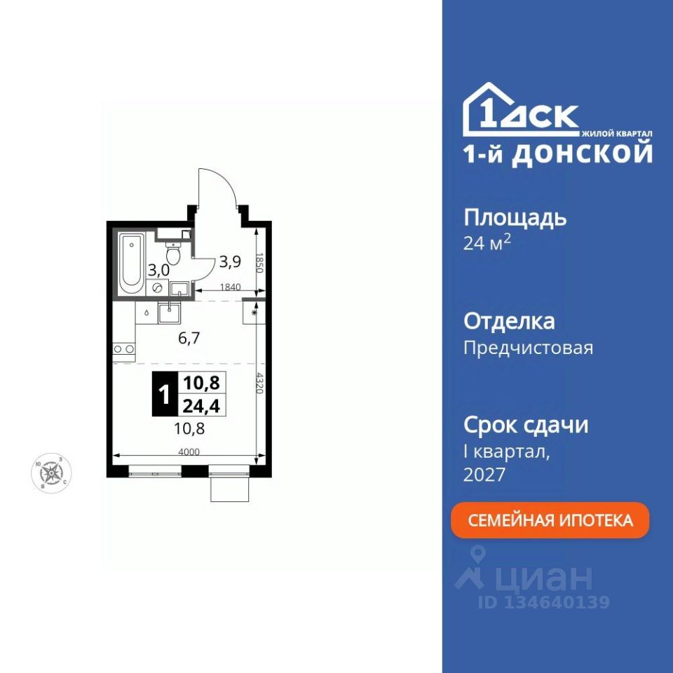 Продаётся квартира-студия номер 605 общей площадью 24.4 кв.м. на 15-м этаже 24 этажного здания. Отделка Whitebox.