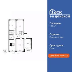 Продаётся 4-к квартира номер 196 общей площадью 108.2 кв.м. на 7-м этаже 24 этажного здания. Предчистовая отделка. Цена с учётом скидки.