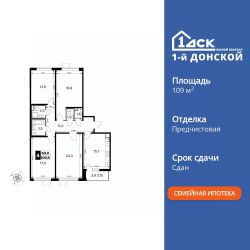 Продаётся 4-к квартира номер 256 общей площадью 109.5 кв.м. на 17-м этаже 24 этажного здания. Предчистовая отделка. Цена с учётом скидки.