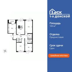 Продаётся 4-к квартира номер 460 общей площадью 100.7 кв.м. на 19-м этаже 20 этажного здания. Предчистовая отделка. Цена с учётом скидки.