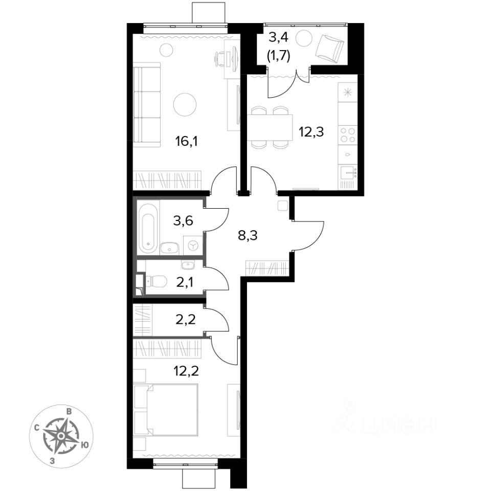 - Раздельный санузел - больше удобства для всех членов семьи.