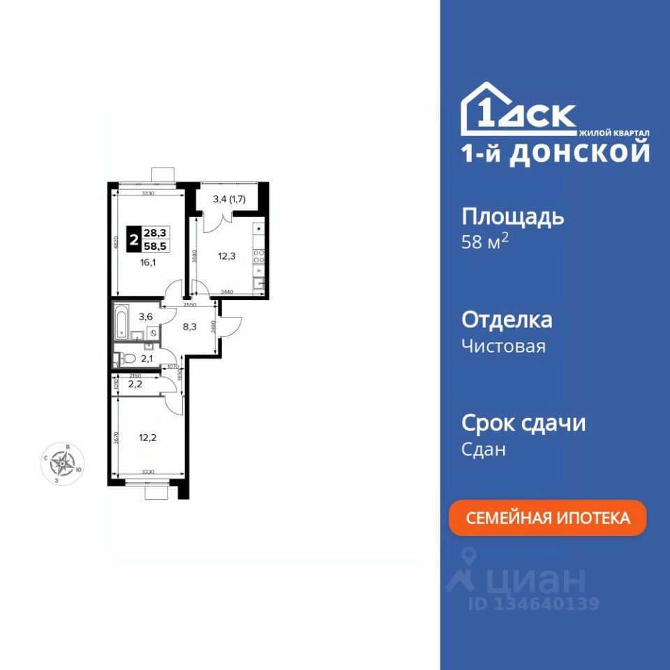 Комплекс 1-й Донской расположен в 7 км от МКАД по трассе М-4 Дон. В нем сочетаются все плюсы комфортной городской среды и природного окружения. В проекте достаточно большой процент квартир, выходящих на 2-3 стороны света.