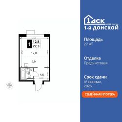 Продаётся квартира-студия номер 158 общей площадью 27.3 кв.м. на 16-м этаже 24 этажного здания. Отделка Whitebox.