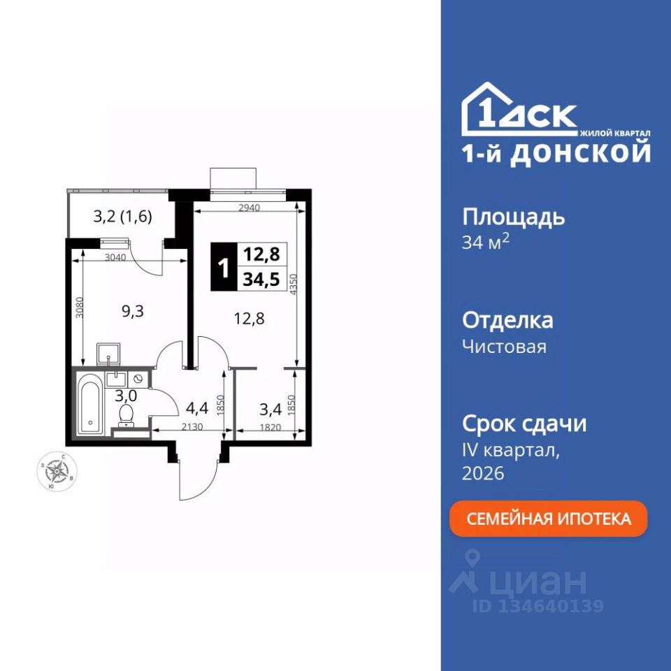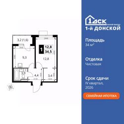 Продаётся 1-к квартира номер 449 общей площадью 34.5 кв.м. на 21-м этаже 24 этажного здания. Чистовая отделка.