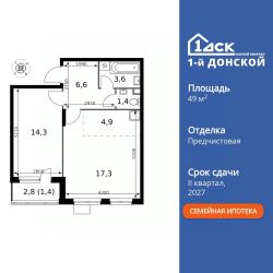 Комплекс 1-й Донской расположен в 7 км от МКАД по трассе М-4 Дон. В нем сочетаются все плюсы комфортной городской среды и природного окружения. В проекте достаточно большой процент квартир, выходящих на 2-3 стороны света.